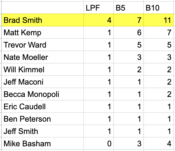 AUTHOR’S NOTE: While the collaborative effort from Jeff Smith’s Berlin last-place finish used Fast Track Racing owner points, it was primarily a Brad Smith Motorsports entry. For the sake of consistency with ARCA’s standings, Fast Track has been credited with the last-place finish in our standings below.