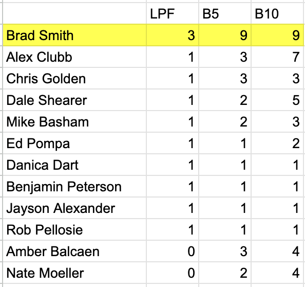 Volunteering for Smith’s team this past weekend, Colby Evans said the following regarding why Smith’s night was cut short: “We changed springs from Salem. We were so low in tech that we had to make terrible wedge adjustments to pass, which made the car incredibly tight and hard to drive. Brad could barely turn the car without washing up in the corners, so he pulled off before the leaders caught him.” Smith would ultimately run 16 laps total, remaining on track during an early caution for a spin from Amber Balcaen on Lap 5 and pulling behind the wall shortly after the ensuing restart.