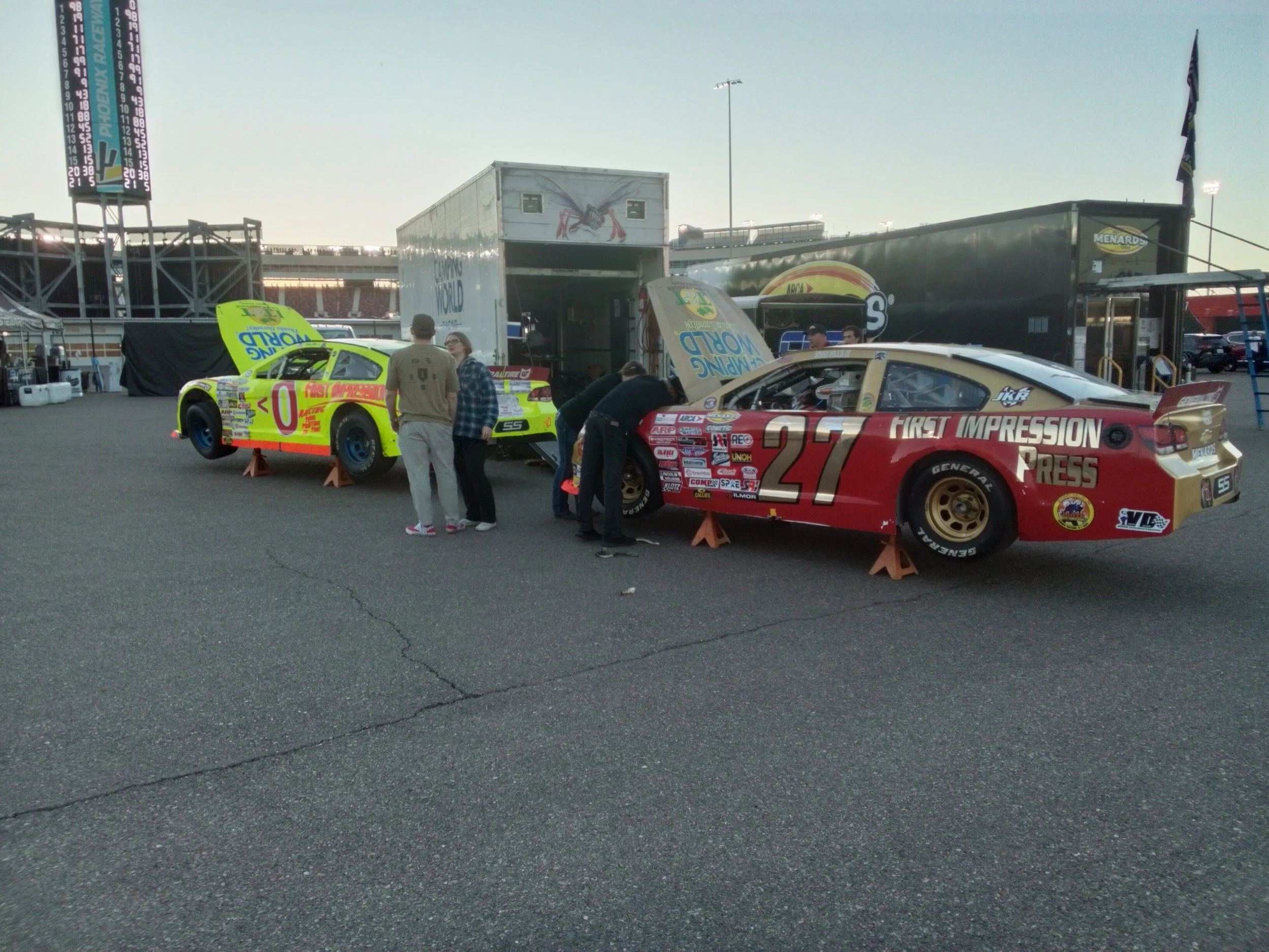 Huffman’s No. (<) 0 used at Phoenix appears to have been a former No. 27 Chevrolet, while Hillis’s No. 27 car resembles the No. 0 Huffman drove at Sonoma earlier this year. (PHOTO: EvernhamParker / @ARCAWEST99)