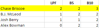 *Briscoe is the first driver to score consecutive Cup Series last-place finishes since September 7, 2025, when Josh Berry scored the second of his three last-place runs in a row at Gateway, part of a disastrous exit from the “Round of 16.”