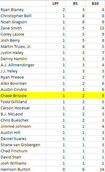 2nd) Joe Gibbs Racing, Kaulig Racing, Motorsports Business Management, Penske Racing, Spire Motorsports (3)