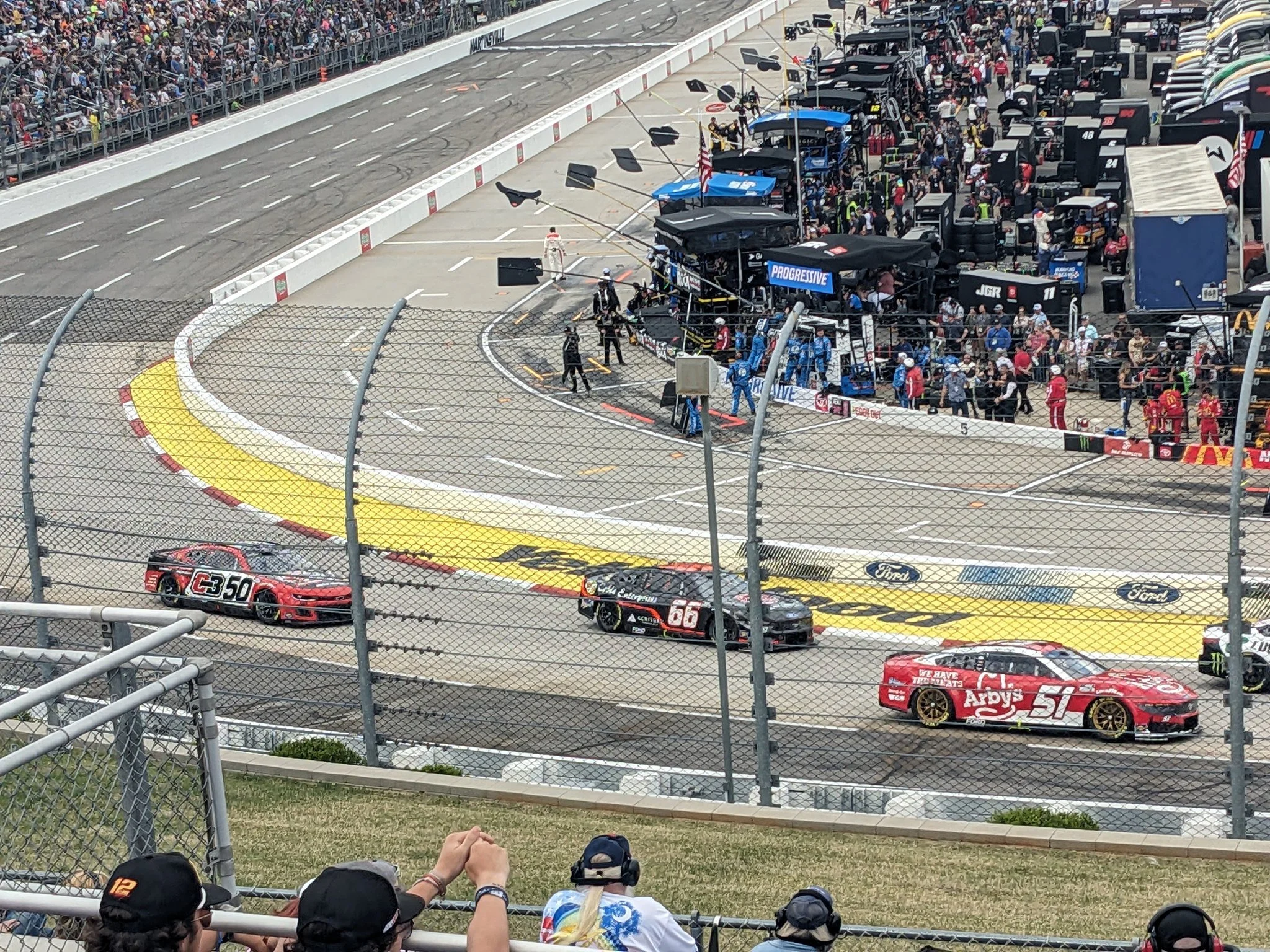 The tail end of the field before the green flag with #50-Burt Myers, #66-Casey Mears, and #51-Cody Ware. (PHOTO: Cameron Tracey, @conrail_1)