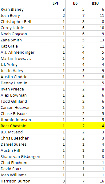 *Chastain is only the second driver in 2024 to finish last in a Cup race after leading a lap in the same event. The other was Chris Buescher, who led 2 laps at Las Vegas on March 3rd.