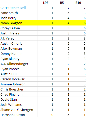 37) #10-Noah Gragson / 13 laps / crash
