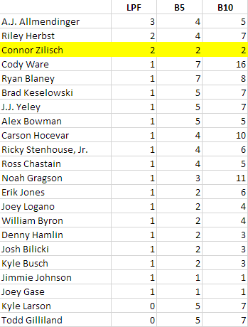 *Zilisch’s “did not start” was not classified in NASCAR’s official results