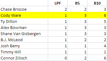 In all, there were 22 changes for the last spot among 9 drivers, which was more competitive than when everyone finished under power in Las Vegas this past March (20 times among 8 drivers), but not as competitive as when it also happened at Richmond on April 1, 2024 (27 times among 11 drivers).