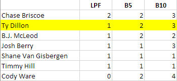 The younger of the two Dillon brothers’ most recent last-place finish came in his last season with Spire Motorsports, when he drove the same #77 now piloted by upstart Carson Hocevar. Dillon returned to the Truck Series with the Rackley-W.A.R. effort, but was replaced near season’s end by Dawson Sutton. In between, he’d picked up a few rides with Richard Childress Racing, 23XI Racing, and what was then Kaulig Racing’s “all-star” entry, the #16. When A.J. Allmendinger returned to full-time Cup competition last season, Dillon was bumped to Kaulig’s second entry, now the #10. He ended up putting together some surprising performances, leading his Duel race in Daytona, qualifying 7th for the 500 and finishing in 14th. He also took 12th in Texas and 8th in the fall race Atlanta, earning him a return for 2026. He started this year with three straight finishes of 16th or better, but came into Sunday’s race with three more no better than 26th.
