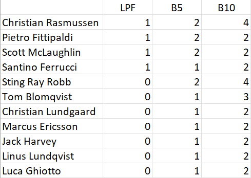 Ferrucci was again impressive in practice, ringing up tenth on the speed charts. Marcus Armstrong was 27th, with a best lap of six minutes flat following a mechanical issue that severely impacted performance. He rebounded to ninth in second practice, while Ferrucci slid to 21st. Sting Ray Robb, who was 26th in first practice, dropped one spot down to end second practice at the bottom of the charts. It was he who would take the final provisional grid position in qualifying. Robb was the only driver in the 1:10 lap time range during qualifying, four-tenths behind Tom Blomqvist in Group 2. Ferrucci was eighth in Group 2, missing the cut for the Fast Twelve by a tenth of a second.