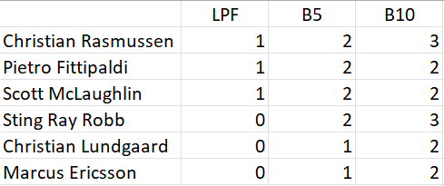 *This was the first last-place finish for the #30 on a road course since Takuma Sato in the 2021 season finale at Laguna Seca.