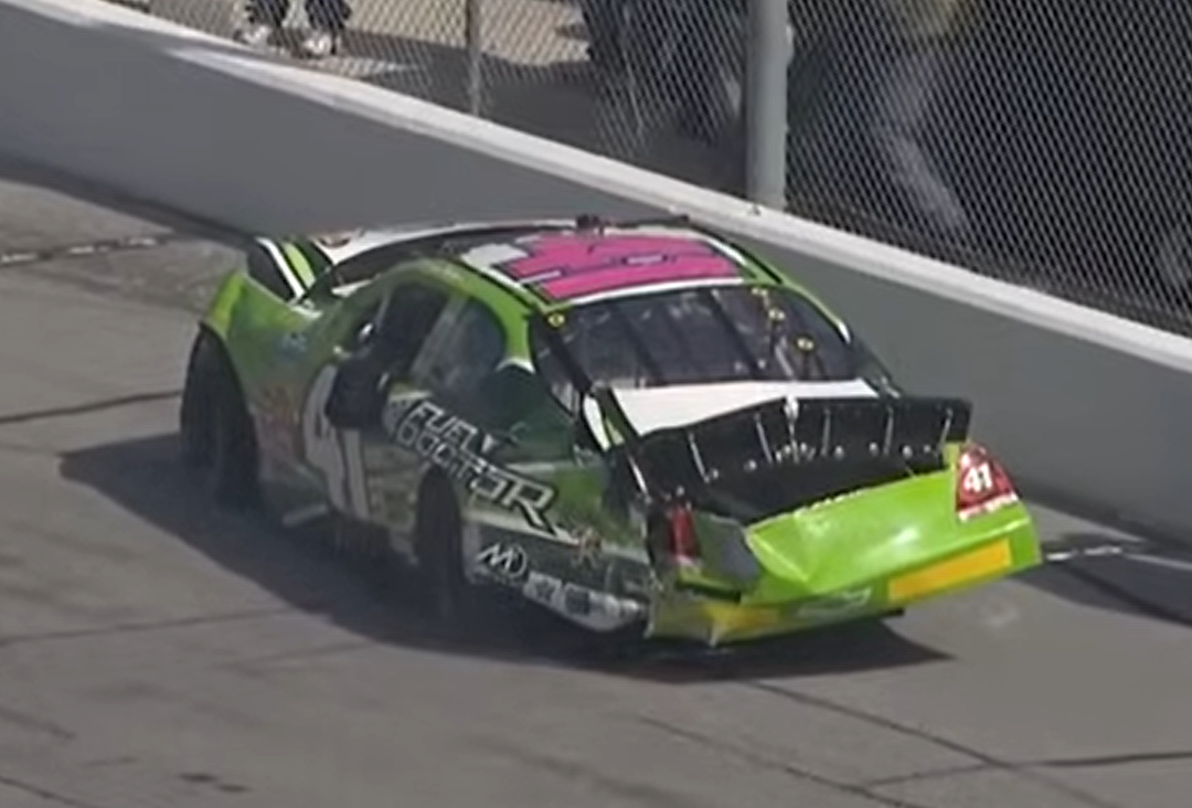 Chrissy Wallace after her first-lap wreck in Daytona, 2010. (SCREENSHOT: ESPN, upload by Voti)