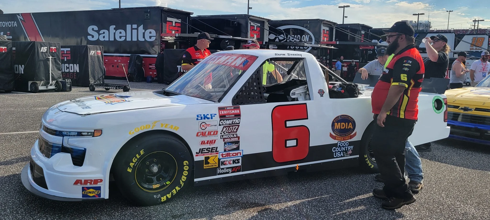 Last offseason, I reported that Norm Benning was excited about the “best opportunity (he) ever had,” acquiring a Chevrolet from Henderson Motorsports which has since been tuned at Joey Gase’s shop. He’d hoped to enter the truck in the season opener at Daytona, but sponsorship issues pushed that moment to today, where he arrives as one of the drivers needing to lock himself in on speed. While MDIA returns as sponsor along with Pittsburgh Pennsylvania Motor Speedway, Benning runs a white scheme instead of his usual black with red numbers. Benning last started this race three years ago, when he finished 17th – his third-best finish in 11 starts at the track.