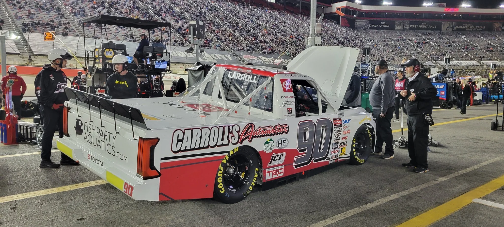 Justin S. Carroll picked up the 1st last-place finish of his NASCAR Craftsman Truck Series career in Saturday’s Weather Guard Truck Race at the Bristol Motor Speedway when his #90 Carroll’s Automotive / Duratain Toyota fell out with brake issues after 57 of 250 laps.