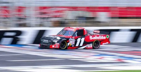 Corey Heim picked up the 1st last-place finish of his NASCAR Craftsman Truck Series career in Friday’s North Carolina Education Lottery 200 at the Charlotte Motor Speedway when his #11 Safelite Toyota finished 2nd and completed all 134 laps, only to be disqualified for three lug nuts not safe and secure in post-race inspection.