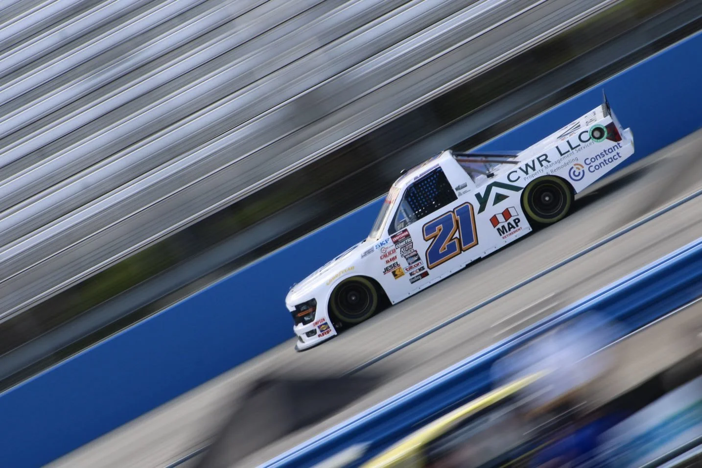 Jayson Alexander picked up the 1st last-place finish of his NASCAR Craftsman Truck Series career in Sunday’s LiUNA! 175 at the Milwaukee Mile when his #21 CWR LLC Ford crashed after 45 of 175 laps.