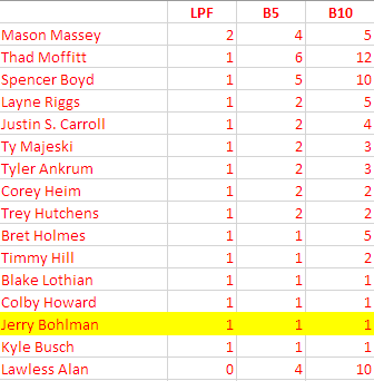 36) #20-Jerry Bohlman / 17 laps / too slow