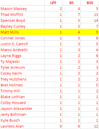 Mills was the race’s only DNF. Muniz crossed the finish line 29 laps down behind Mondeik and Currey. Rounding out the Bottom Five was Marco Andretti, whose #04 Group 1001 / CarQuest Chevrolet finished seven laps down to race winner Grant Enfinger.