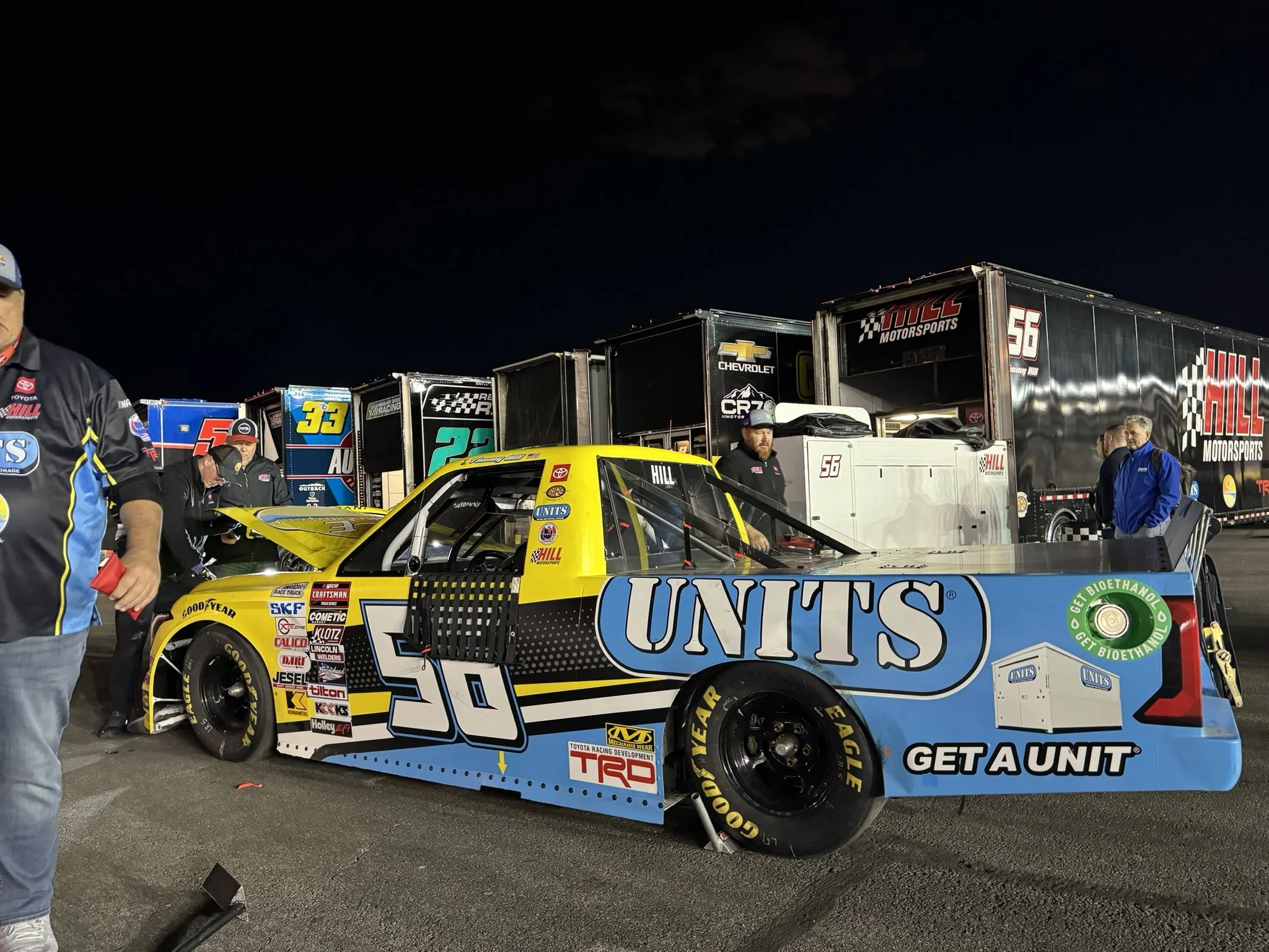 Timmy Hill picked up the 2nd last-place finish of his NASCAR Craftsman Truck Series career in Friday’s Victoria’s Voice Foundation 200 presented by Westgate Resorts at the Las Vegas Motor Speedway when his #56 Coble Enterprises / UNITS Toyota fell out with electrical issues after 75 of 134 laps.