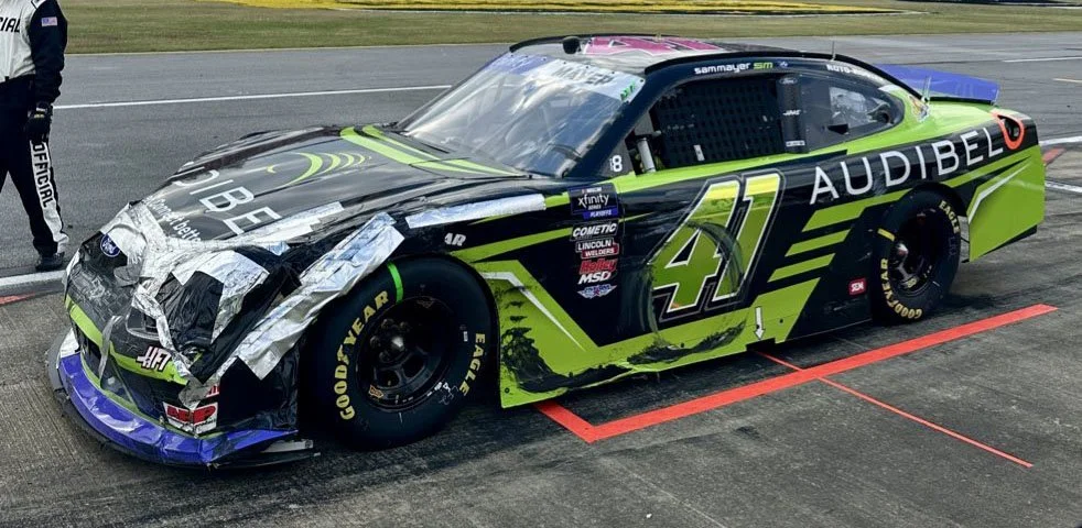 Sam Mayer picked up the 5th last-place finish of his NASCAR XFINITY Series career in Saturday’s United Rentals 250 at the Talladega Superspeedway when his #41 Audibel Ford was eliminated under NASCAR’s “Damaged Vehicle Policy” (DVP) after 15 of 100 laps.