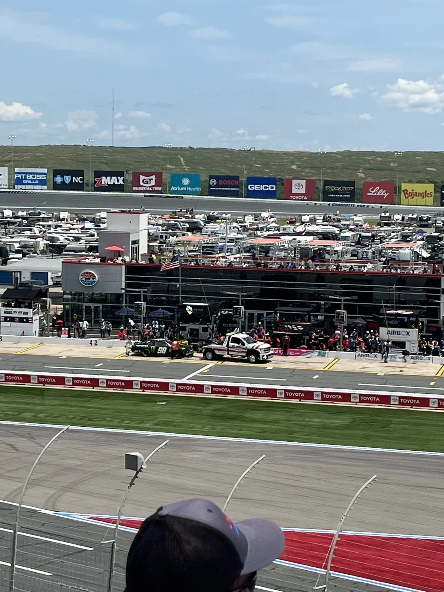 Parker Kligerman gets a tow at pit entrance. (PHOTO: Adam Lemerise, @allsportsfan24)