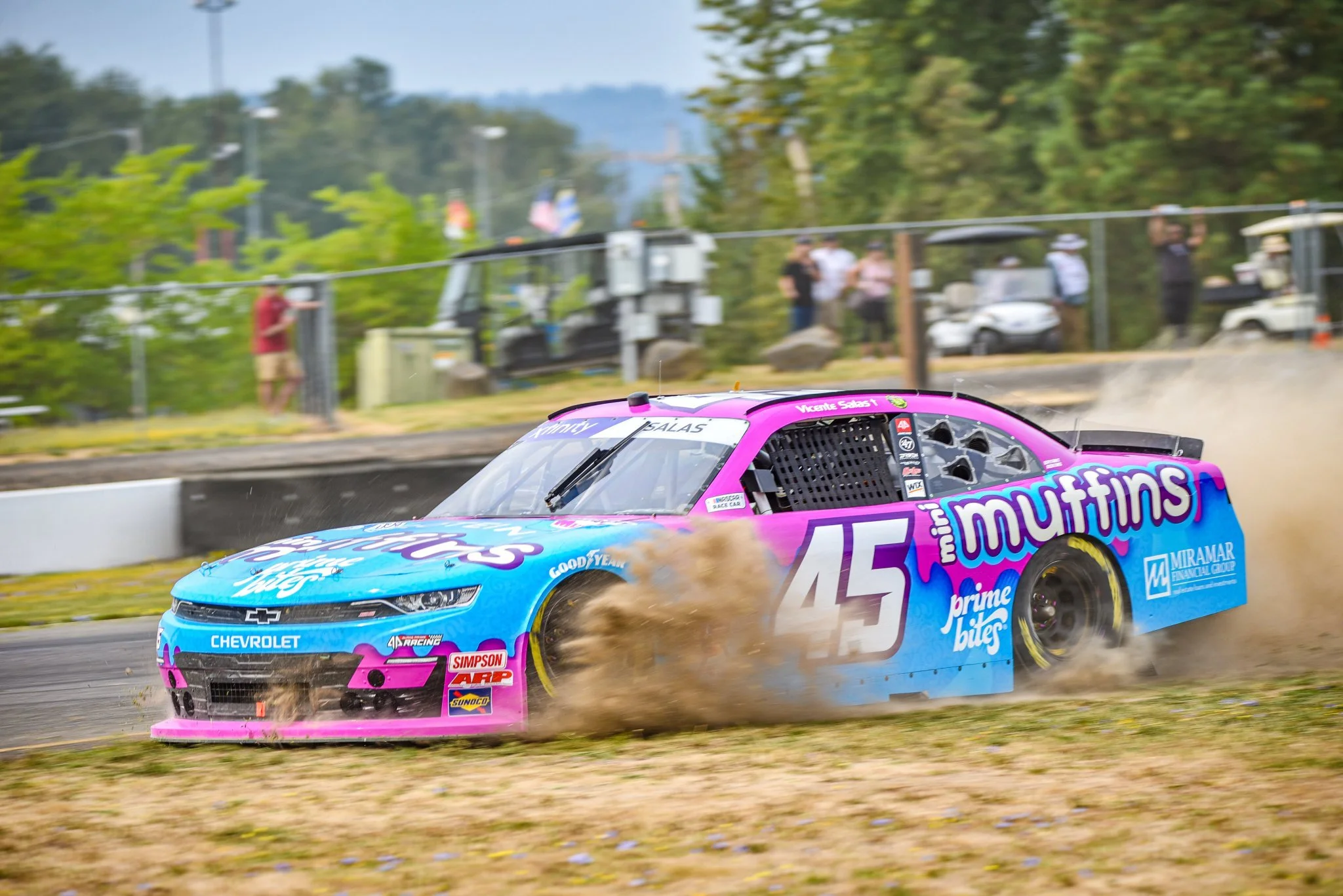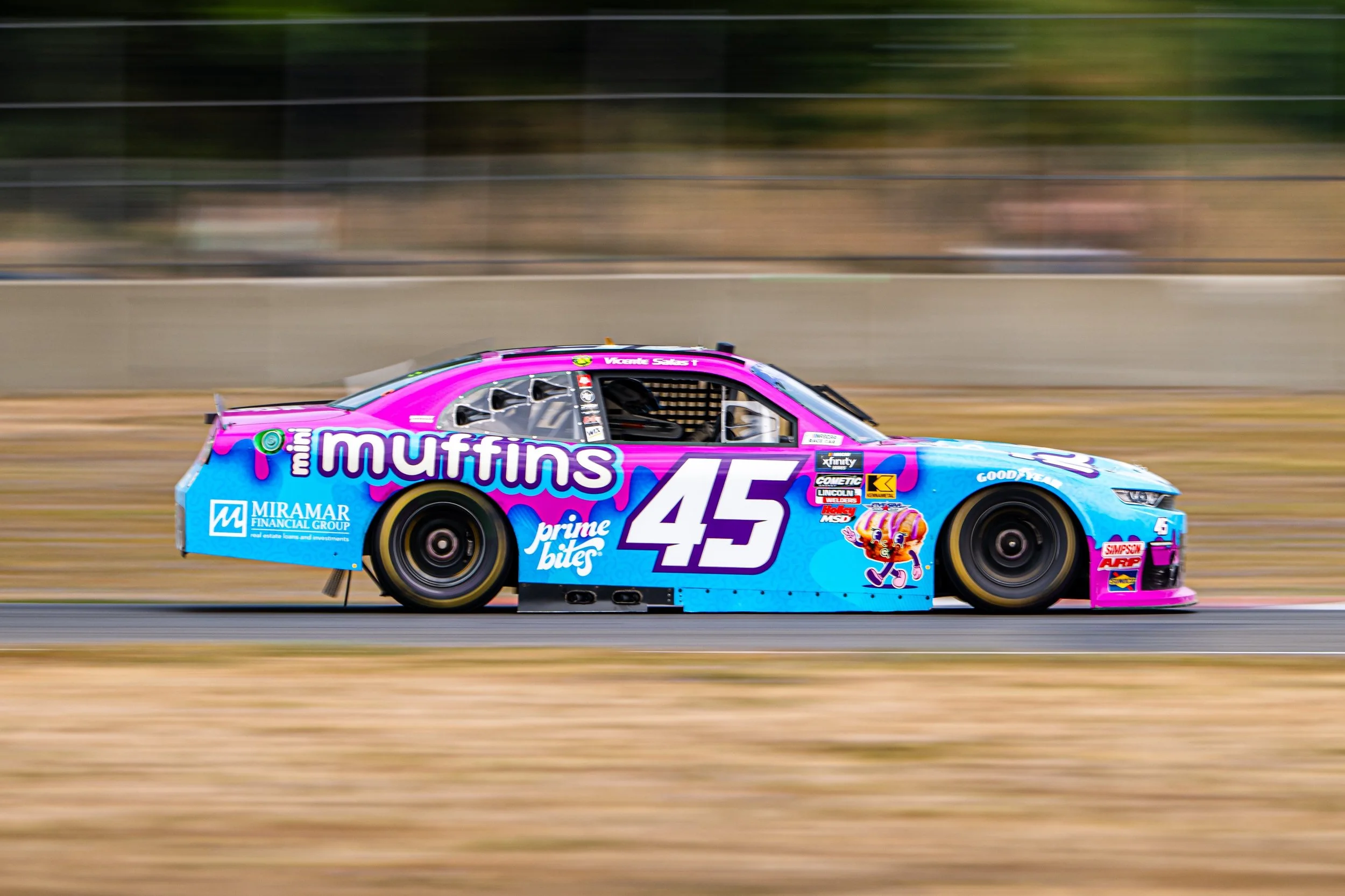 Vicente Salas picked up the 1st last-place finish of his NASCAR XFINITY Series career in Saturday’s Pacific Office Automation 147 at the Portland International Raceway when his #45 Prime Bites Mini Muffins Chevrolet finished running, completing 43 of 78 laps.